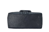 This duffel bag is made from high quality ostrich leather with a crocodile tail insert. Double zipper and double carry handle with gunmetal hardware. Sports an adjustable and detachable shoulder strap. Black suede leather lines the bag interior, which also features an inside zip pocket and two open pockets.