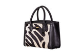 Lauren - Medium size, top handle tote bag, zebra printed hair on hide and black leather