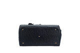 The ostrich leather handbag Sandi is designed with a look after the famous Birkin bag but with a comfortable top zip for comfortable access. The interior contains an inside zip pocket with two internal patch pockets, and is lined with high quality black suede leather. Features a double handle and a gold lock system as decorative hardware. Bag feet studs are located on the bottom panel of the bag.