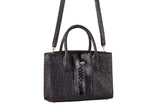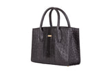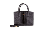 Lauren - Small top handle black ostrich and ostrich shin leather tote bag