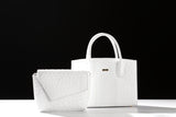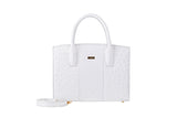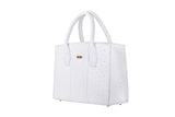 Lauren - Medium size, top handle white ostrich and ostrich shin leather tote bag