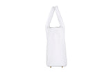 White ostrich leather, top handle tote bag. Top zipper closure with an inside back-zip pocket. The bag interior consists of high-quality leather lining.The bag sports a detachable shoulder strap with an adjustable buckle. Bag feet studs are located on the bottom panel.